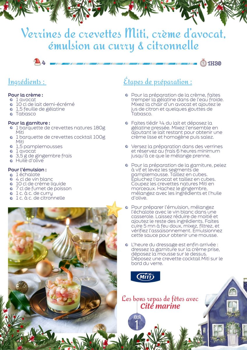 L’heure du dressage est enfin arrivée : dressez la garniture sur la crème prise, déposez la mousse sur le dessus. Déposez une crevette cocktail Miti sur le bord du verre.