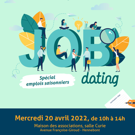 Le mercredi 20 avril 2022, Cité Marine participera au Job dating d’Hennebont, principalement consacré au recrutement d’emplois saisonniers et job d’été.