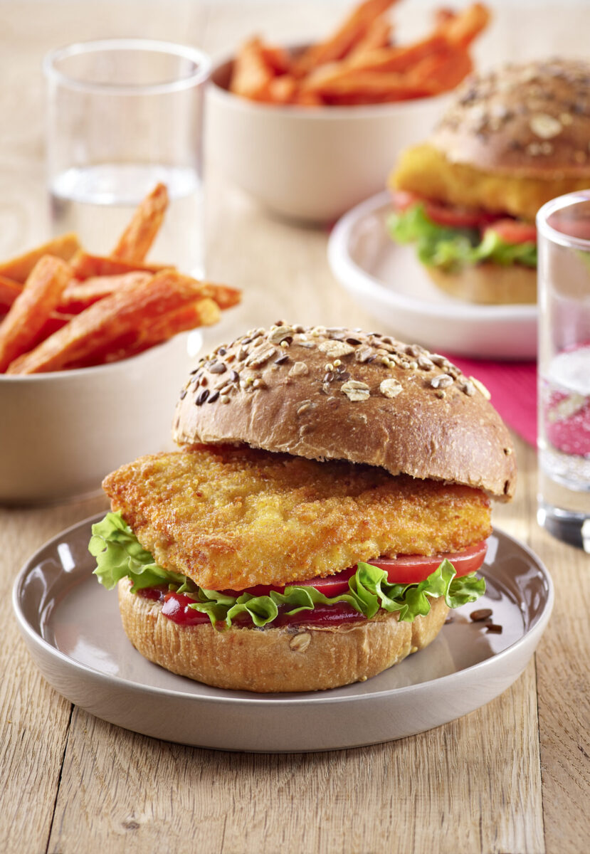 Portion de filets de Colin d’Alaska sans arête**, panée, préfrite, cuite à cœur, surgelée.